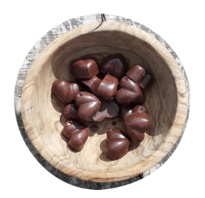Place all in a bain-marie, until melted and mix together. Pour into chocolate moulds or Tupperware and put in the freezer.